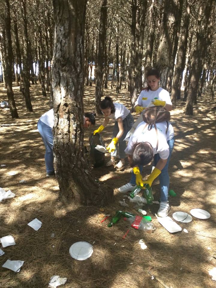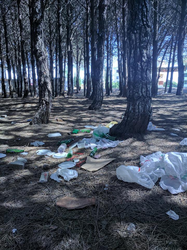 Ndërsa grupi më i madh punonte për pastrimin e plazhit, ne u caktuam të pastronim parkun… Mbetjet nga viti i kaluar duken qartë, por më qartë duken ato që kanë lënë ata që kanë ardhur për piknik këtë pranverë. Pjata, shishe, kanaçe, qese e bidona. Padyshim edhe mbetjet e qymyrit të zgarës.